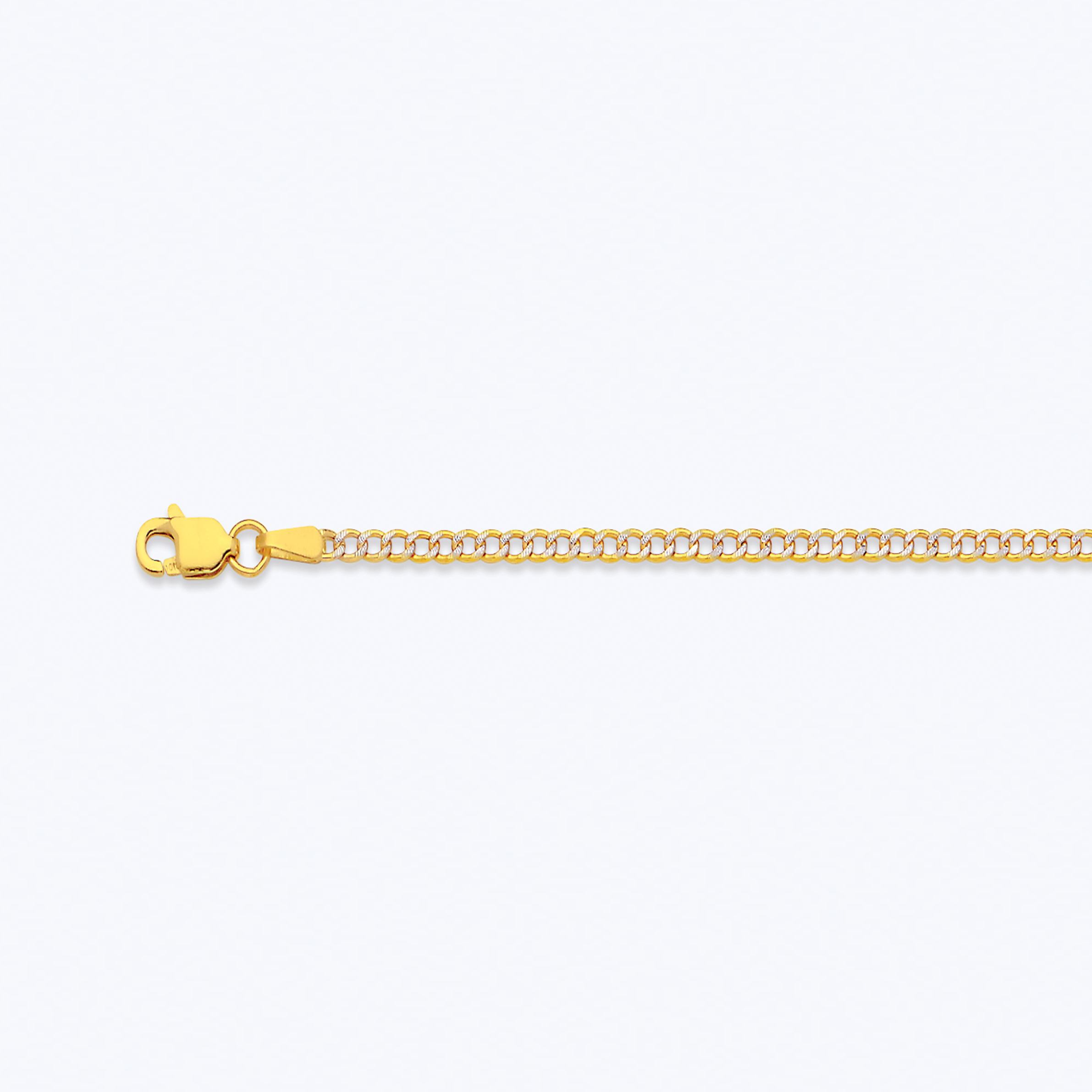 14K 2MM YELLOW GOLD HOLLOW PAVE CURB 9″ CHAIN BRACELET (AVAILABLE IN LENGTHS 7″ – 30″)