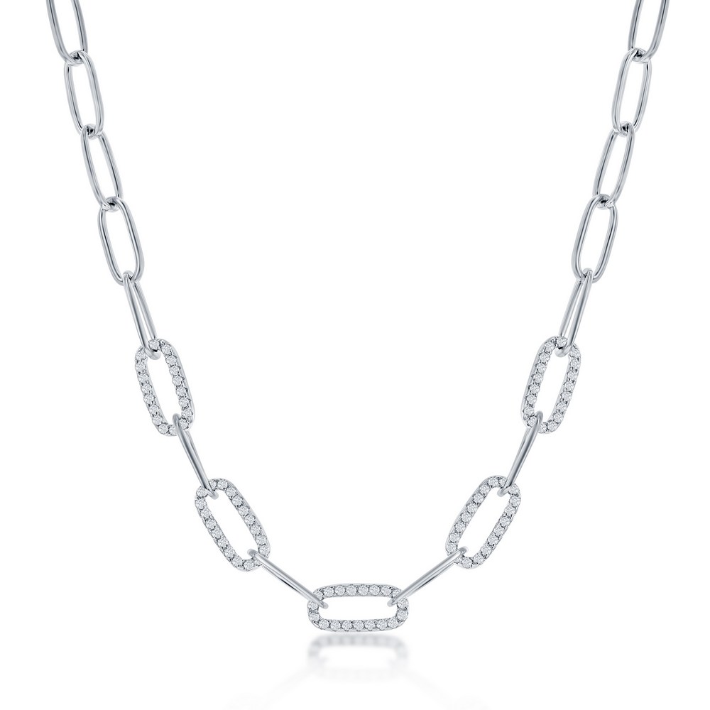 Sterling Silver, 5mm CZ Paperclip Necklace
