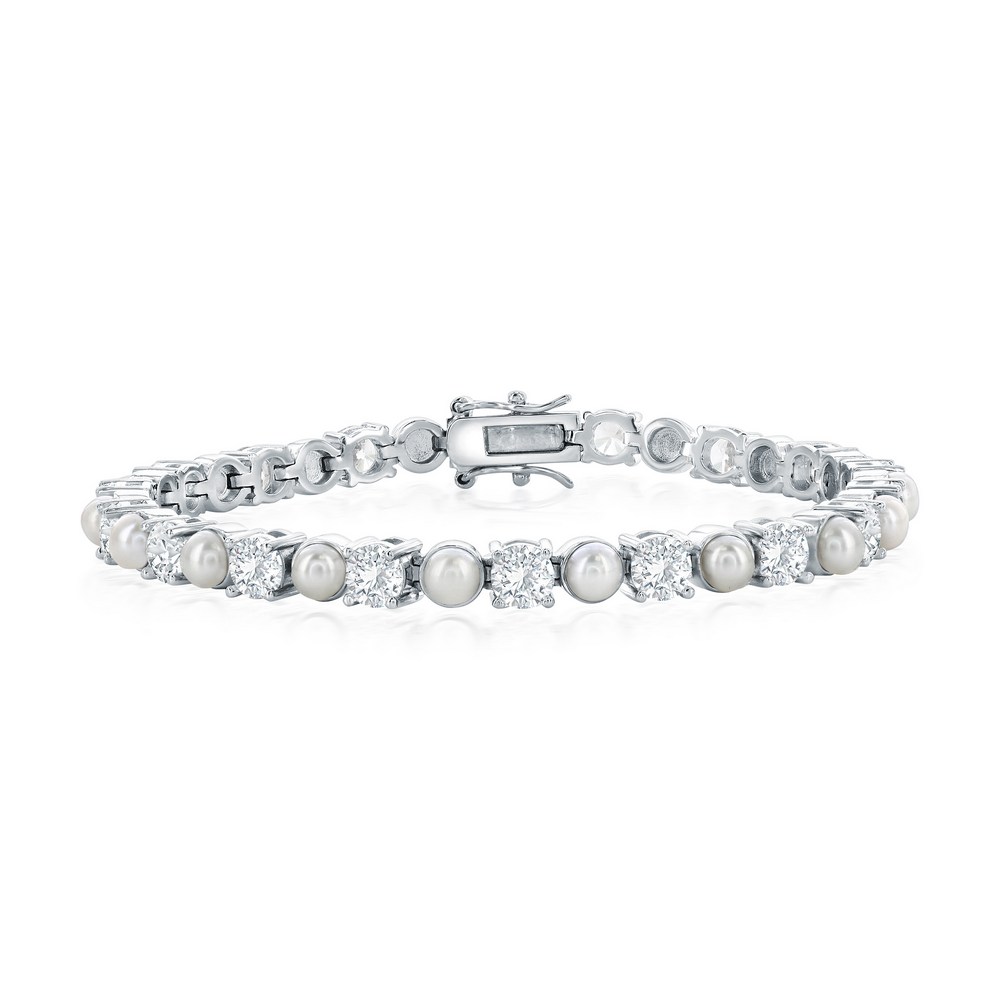 Sterling Silver, Alternating Pearl & CZ Tennis Bracelet