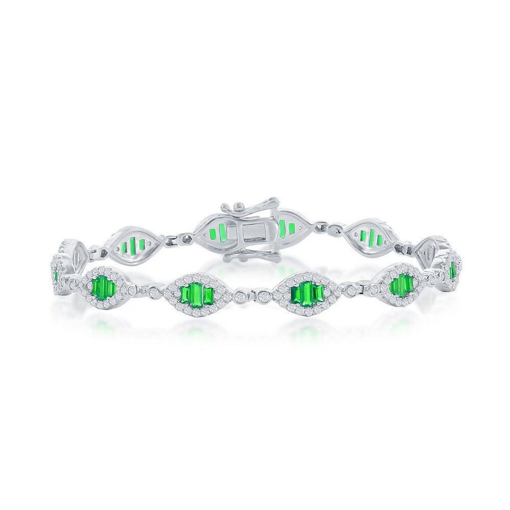 Sterling Silver, Baguette Tennis Bracelet – CZ Emerald