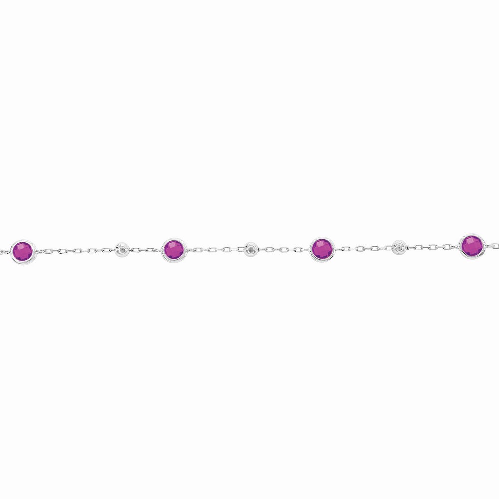 Sterling Silver, Bezel-Set CZ & Bead Bracelet – Ruby