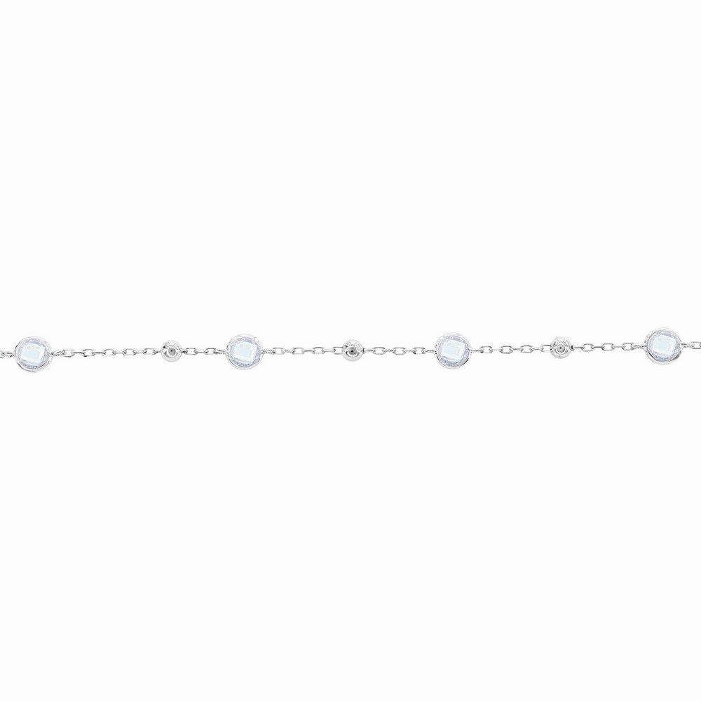 Sterling Silver, Bezel-Set CZ & Bead Bracelet – White