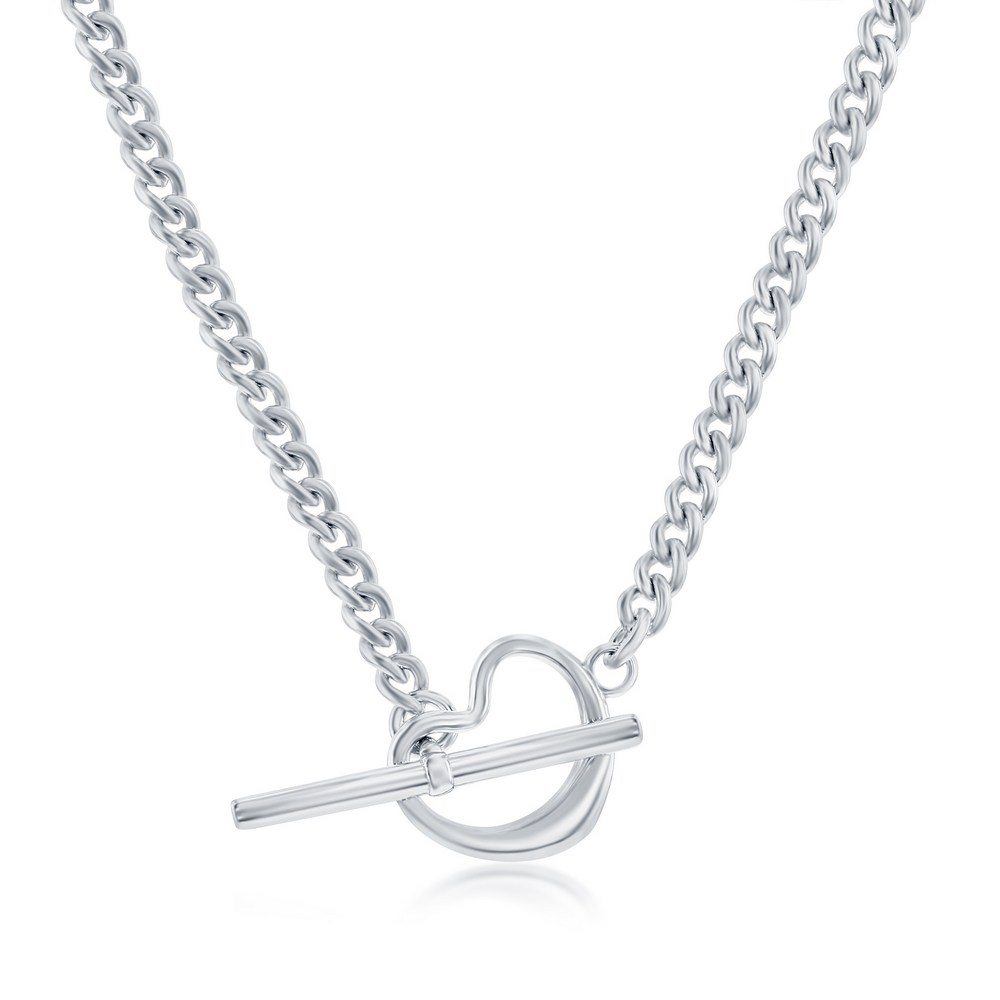 Sterling Silver Curb Chain Heart Toggle Necklace