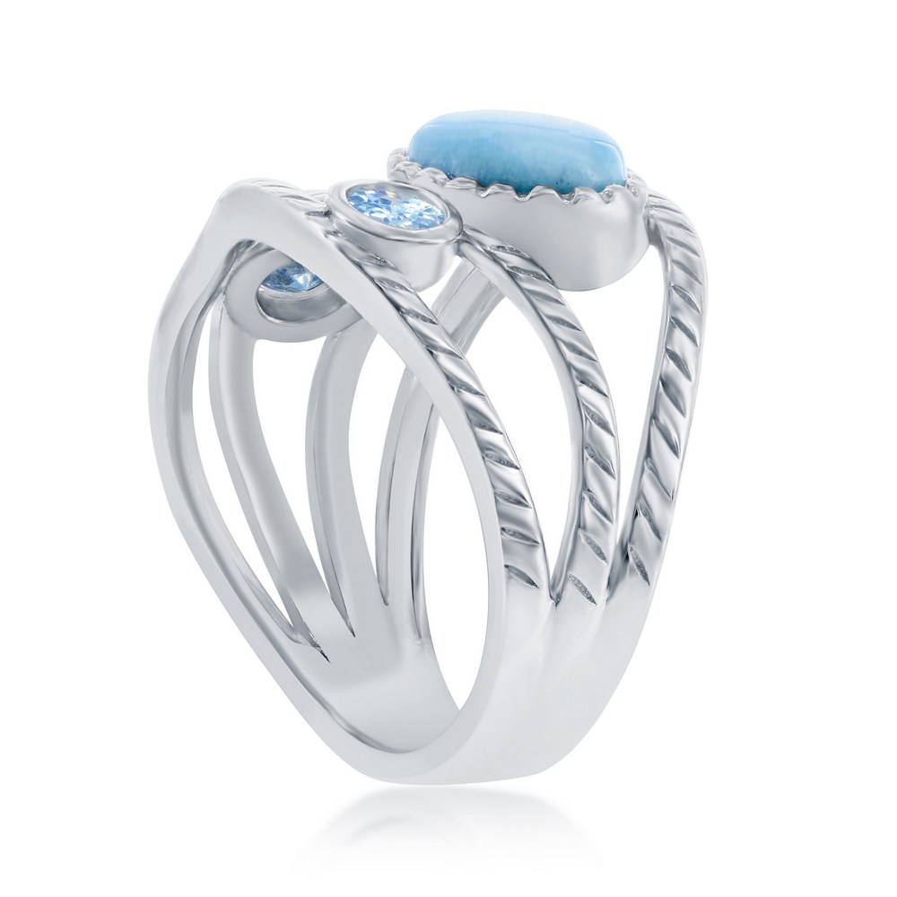 Sterling Silver Larimar & Blue CZ Ring