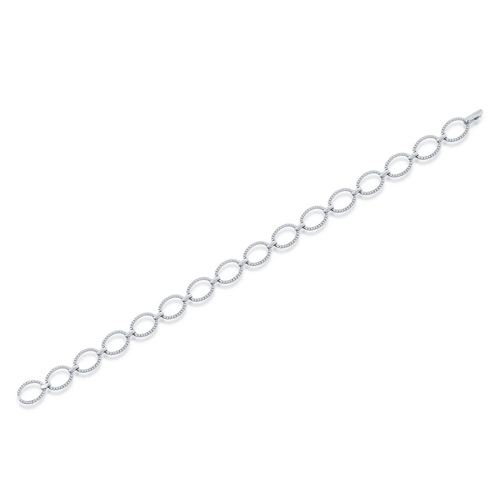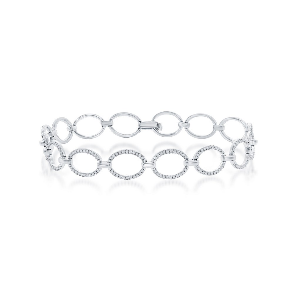 Sterling Silver, Open Oval Diamond Bracelet – (352 Stones)
