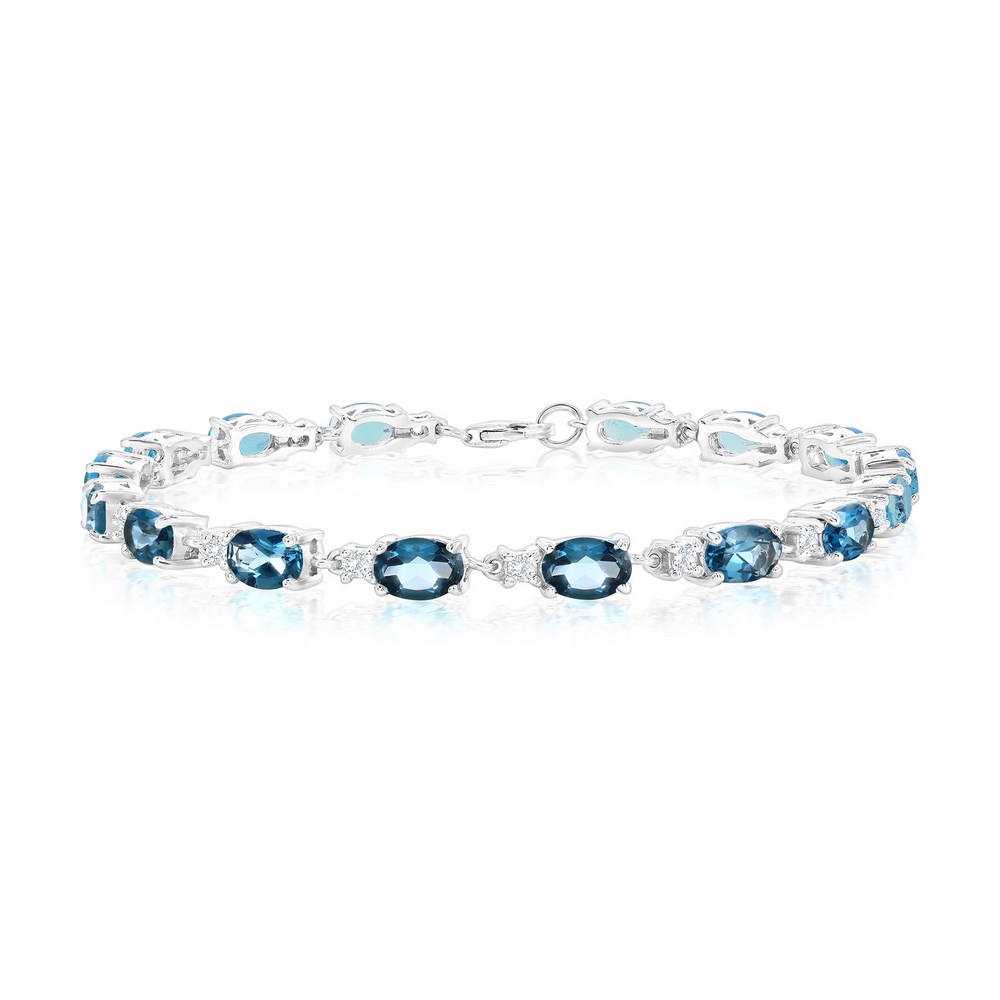 Sterling Silver, Oval 8.80ct London BlueTopaz & 0.64ct White Topaz Gem Bracelet