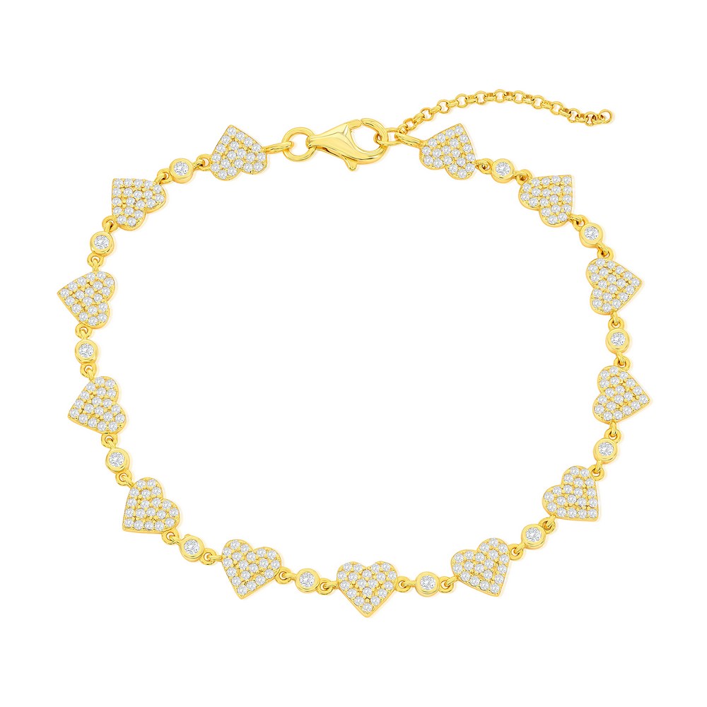 Sterling Silver Pave CZ Heart Bracelet – Gold Plated