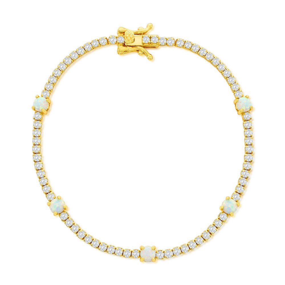 Sterling Silver, Round White Opal & CZ Tennis Bracelet – Gold Plated