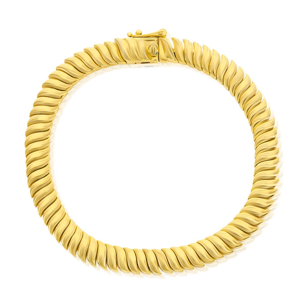 Sterling Silver Solid Wave Bracelet – Gold Plated
